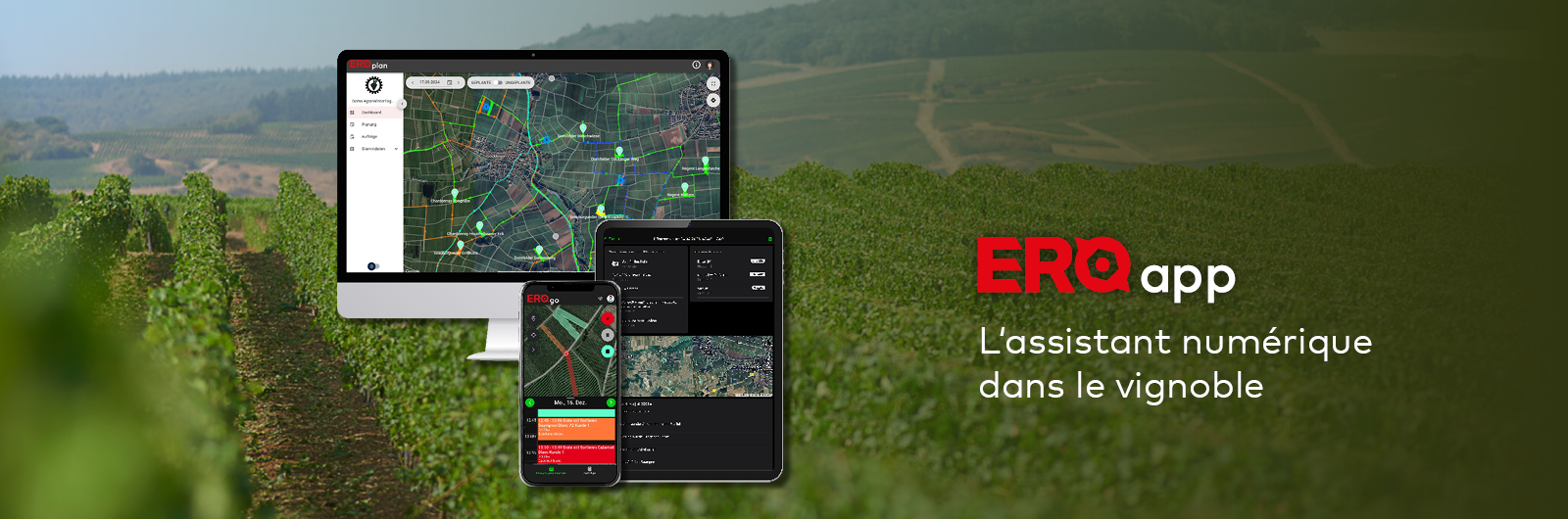 Le logiciel de gestion d'une entreprise agricole dans le secteur viticole aide à planifier et à coordonner l'intervention des machines. C’est le complément idéal pour les machines ERO, BINGER et d’autres marques.